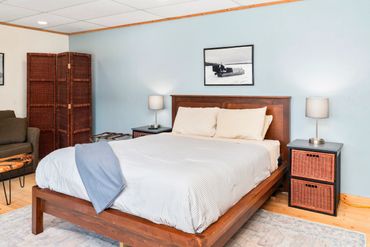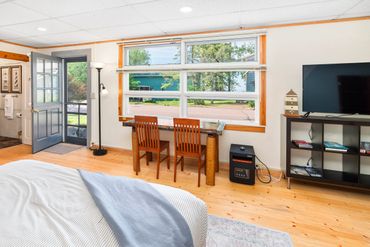 Modern amenities such as a SMART TV and wireless internet ensure entertainment and connectivity throughout your stay. Wake up in the morning to glimpses of Lake Superior through the large window, creating a serene atmosphere for your island retreat.