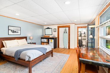 Located in downtown La Pointe, The Windsled Studio offers an exceptional blend of comfort and convenience. This spacious studio features a living area with a small refrigerator, microwave, and counter space, along with a comfortable queen-size bed, making it perfectly suited for two people.